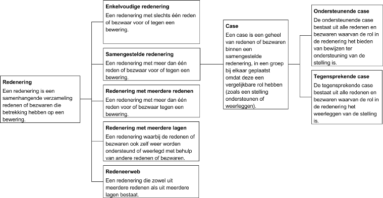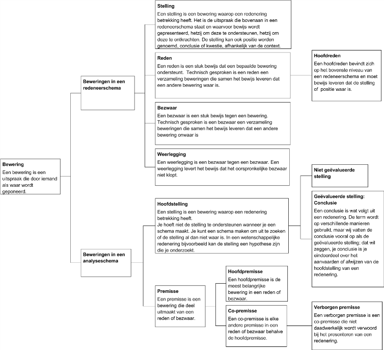 Schematische uitwerking van de begrippen 'bewering' en 'redenering'