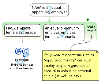 ... This reason provides only weak support for the conclusion since being an 'equal opportunity' employer requires that one must employ people regardless of race, skin colour or national origin, as well as sex.