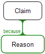 There are lots of superficially different ways to map a reason. The key thing is to visually distinguish the reason and the supported claim, and to show the link between them. The mapping approach we adopt here is the one used in the Rationale™ software. Using this approach show that something is a reason by the use of (a) the colour green, for reason; and (b) the word "because" just above the reason.