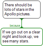 Here, the claim being supported is There should be lots of stars in the Apollo pictures. The evidence is that when we go out on a clear night and look up, we see many stars. Here is how to map this reasoning: