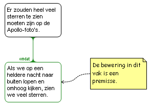 Als je goed kijkt naar de redenen en bezwaren in Tutorial 1, kom je er al snel achter dat deze allemaal een bewering bevatten. Een bewering die is opgenomen in, of deel uitmaakt van, een reden of bezwaar wordt een premisse genoemd